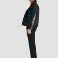 Its minimalist silhouette is sharpened with subtle design details: a sleek band collar with snap closure, asymmetric chest zipper, and precision-stitched seams that follow the body’s form. The texture of the leather tells its own story—supple yet structured, durable yet elegant. Every element is engineered for function: YKK zippers ensure smooth, enduring performance; a tailored cut offers both freedom and refinement.