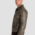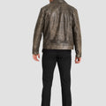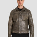 Distressed Olive Leather Jacket – “The Rebel’s Edge”